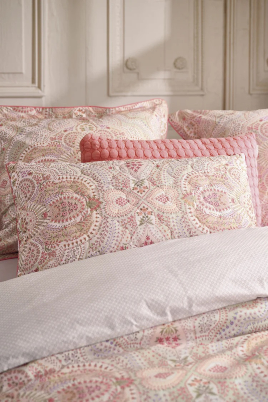 Quilt Moon Flower van Pip Studio is opgebouwd uit bloemetjes en blaadjes in kleine vormen die zorgvuldig in elkaar gepuzzeld zijn tot een prachtig geheel. Met een pastel ondergrond en een verrassende sterrenprint aan de achterzijde. Rondom heeft de quilt een doorgestikt elegant patroon met een gekleurde bies, dit geeft de quilt een luxe uitstraling. De quilt kun je tweezijdig gebruiken en past prachtig bij het Moon Flower dekbedovertrek. In combinatie met het Moon Flower quilted sierkussen creëer je het ultieme mix&match-effect. Pip Studio maakt happy products for happy people. Pip Studio ontwerpt en produceert bed-, keuken- en badtextiel in samenwerking met Bedding House. Elk product is een echte eyecatcher: klassiek maar met een speelse twist.