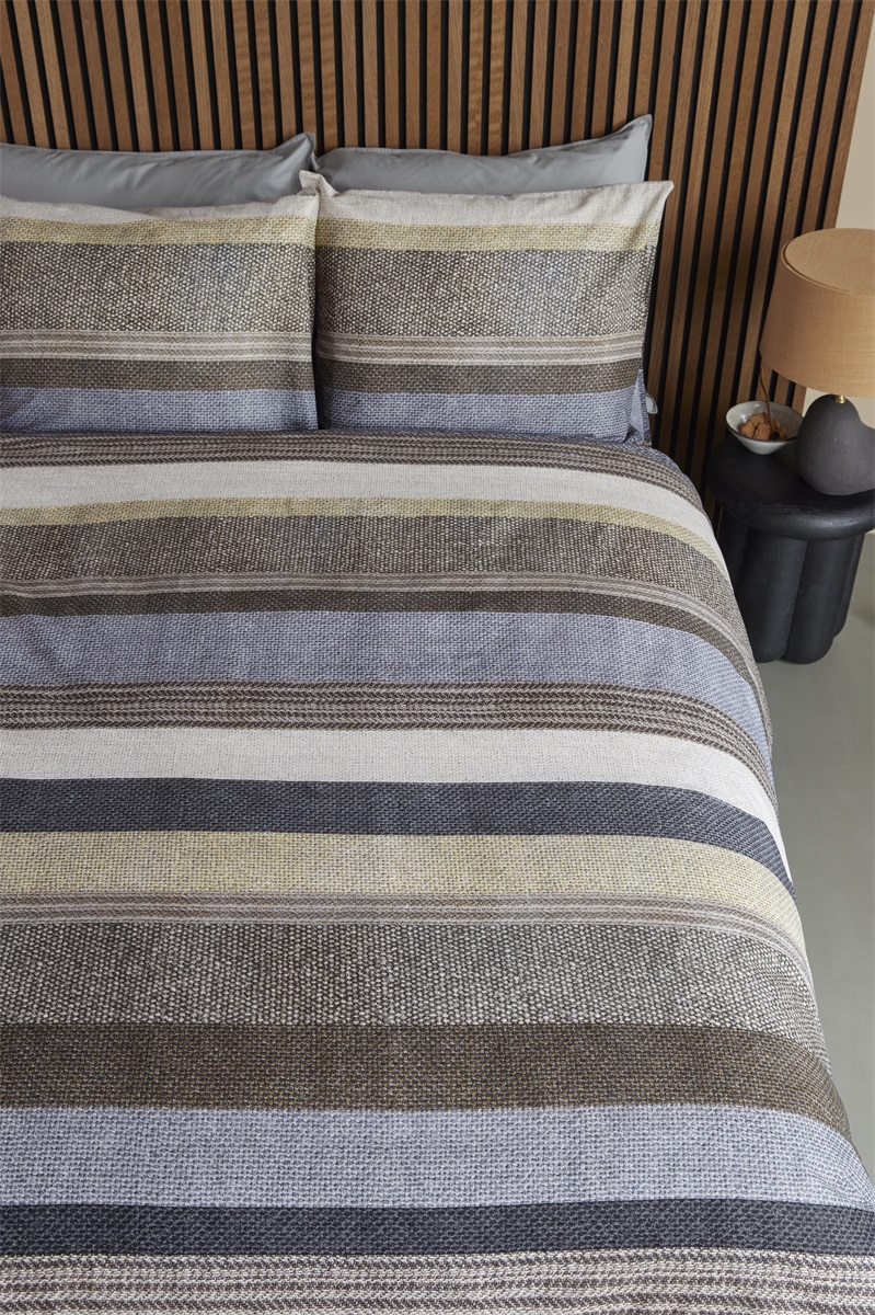 Het Beddinghouse Elodie dekbedovertrek is een stijlvolle toevoeging voor je interieur. Dit prachtige dessin heeft een modern banendessin met mooie, bijpassende natureltinten. Zo wisselen grijs, zand en bruintinten elkaar speels af in strepen van verschillende stofstructuren. Hierdoor oogt het geheel zowel trendy als sfeervol. Ook combineer je deze warme tinten eenvoudig met diverse andere kleuren in je slaapkamer. Voor de finishing touch zie je het leuke strepenpatroon terugkomen op de bijbehorende kussenslopen.