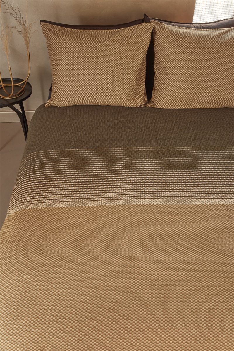 Dekbedovertrek Demi van Beddinghouse heeft een moderne, tijdloze uitstraling. Het banendessin bestaat uit een subtiel lijnenpatroonop een ondergrond met stofstructuur. De banen die zijn afgebeeld hebben een subtiel kleurverloop in terratinten. Het dekbedovertrek is gemaakt van flanel. Deze warme winterkwaliteit zorgt ervoor dat je heerlijk wegdroomt tijdens de koude wintermaanden. Met dit overtrek kun je energie besparen, als je de thermostaat lager zet lig je er nog heerlijk warm bij met dit flanellen dekbedovertrek. Dit overtrek is beschikbaar in meerdere kleurstellingen. Duurzame verpakking Het dekbedovertrek is mooi en duurzaam verpakt in een stoffen tasje gemaakt van hetzelfde materiaal als het overtrek. Je kunt het tasje eenvoudig hergebruiken. Over Beddinghouse Ieder seizoen brengt het merk Beddinghouse stories die aansluiten bij de laatste trends op het gebied van kleur en interieur. Iedere story heeft een unieke stijl en bijbehorende kleurstelling. Kies de kleur en stijl die het beste bij je past.