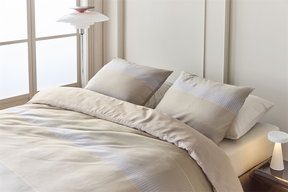 Dekbedovertrek Abstract geeft je slaapkamer een moderne en luxe uitstraling met zijn verfijnde banenontwerp en subtiele grafische structuur. De kleurstelling is warm en natuurlijk, perfect voor een rustige sfeer. Dankzij de effen achterzijde kies je eenvoudig tussen de rustige of juist meer uitgesproken kant. De combinatie van stijl, flexibiliteit en een luxe look maakt dit overtrek een tijdloze toevoeging aan je interieur. Je valt ontspannen in slaap en wordt fris wakker in een kalme, eigentijdse omgeving.