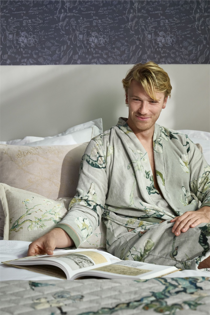 OverzichtDe Almond Blossom badjas is ontwikkeld in officiële samenwerking met het Van Gogh Museum en ademt dezelfde serene schoonheid als Van Goghs meesterwerk Amandelbloesem. Het verfijnde botanische patroon met bloeiende takken in tinten van zachtgroen, wit en subtiel blauw vormt een elegant contrast op de lichte achtergrond. Gemaakt van hoogwaardige, duurzame materialen biedt deze badjas een luxueus en rustgevend draagcomfort. Perfect voor wie zijn ochtend wil beginnen in stijl en omringd wil zijn door tijdloze, natuurlijke schoonheid.